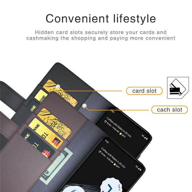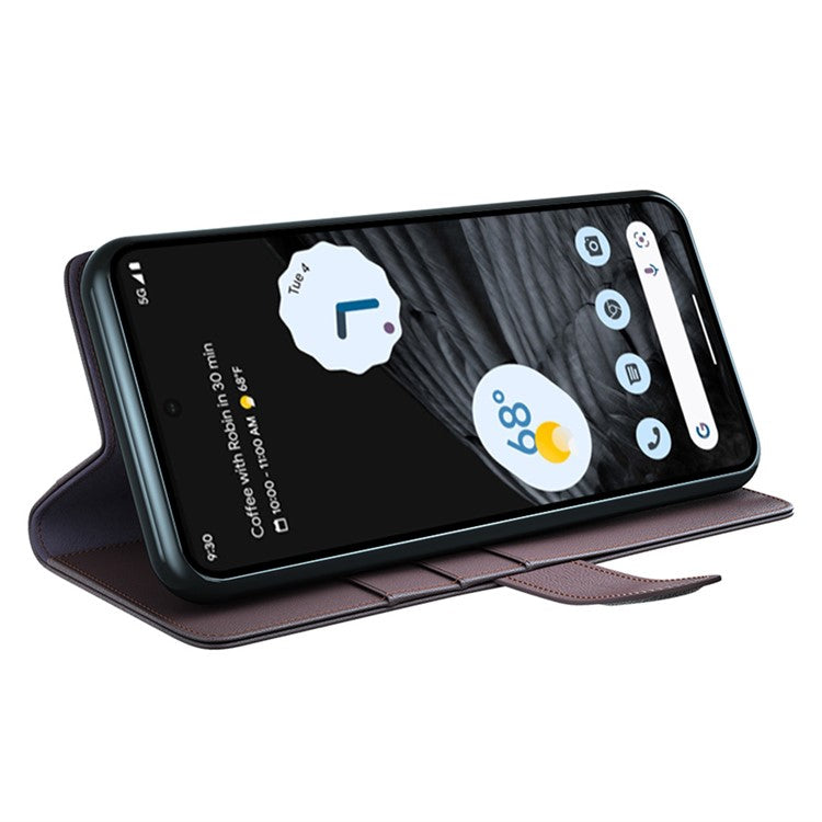For Google Pixel 7 5G Case Genuine Split Leather Flip Folio Phone Cover - Brown
