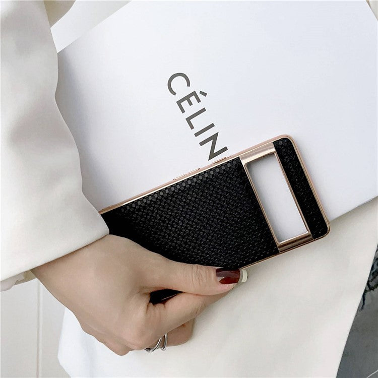 For Google Pixel 7 5G Cell Phone Back Shell, Textured Genuine Leather Coated TPU Phone Case Nano Electroplating Protective Cover - Black