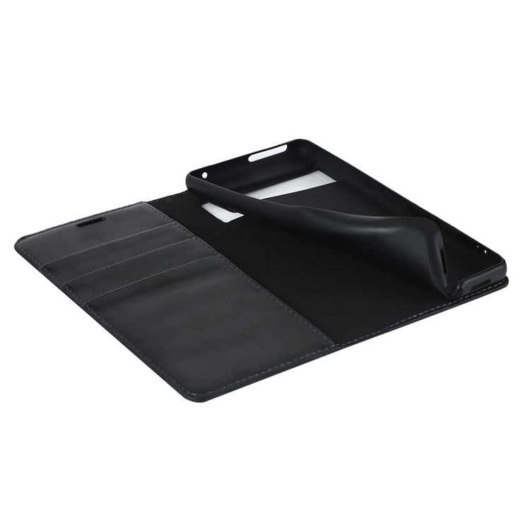 For Google Pixel 7 5G Cell Phone Case Crazy Horse Texture Wallet Stand Genuine Leather Flip Phone Cover - Black