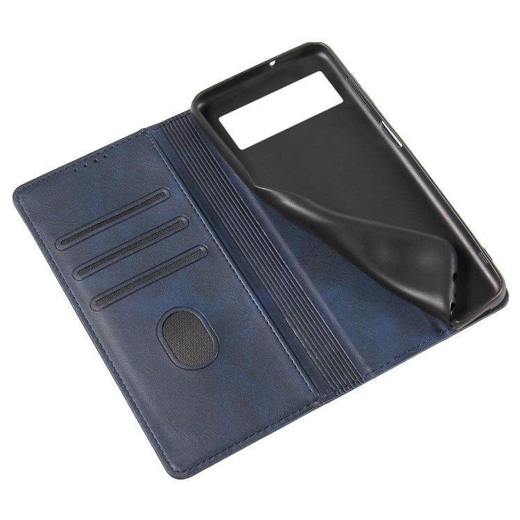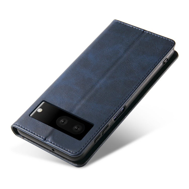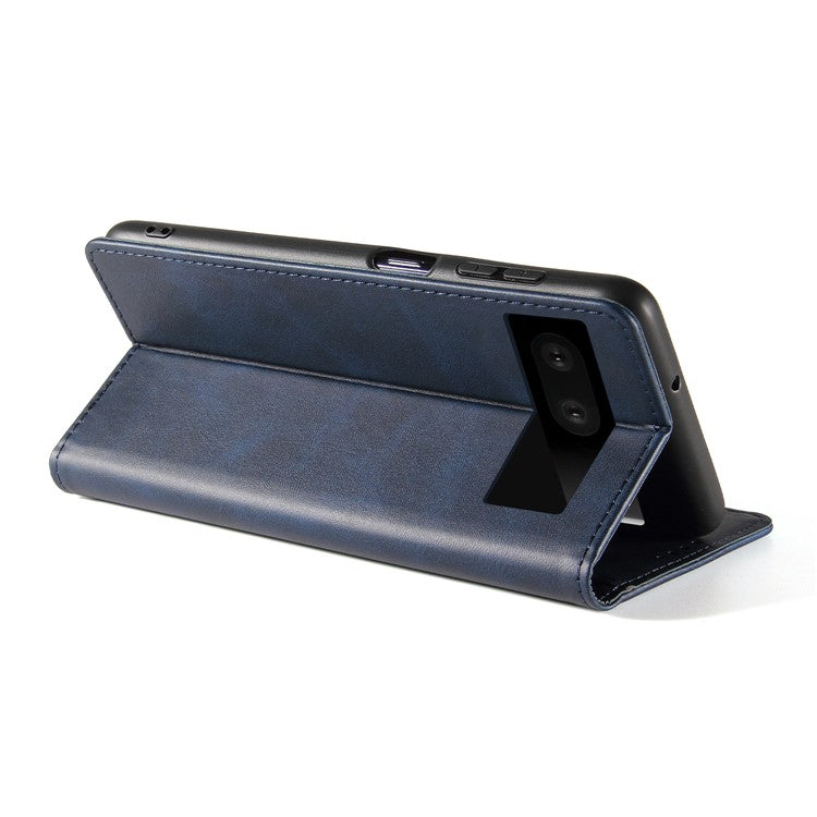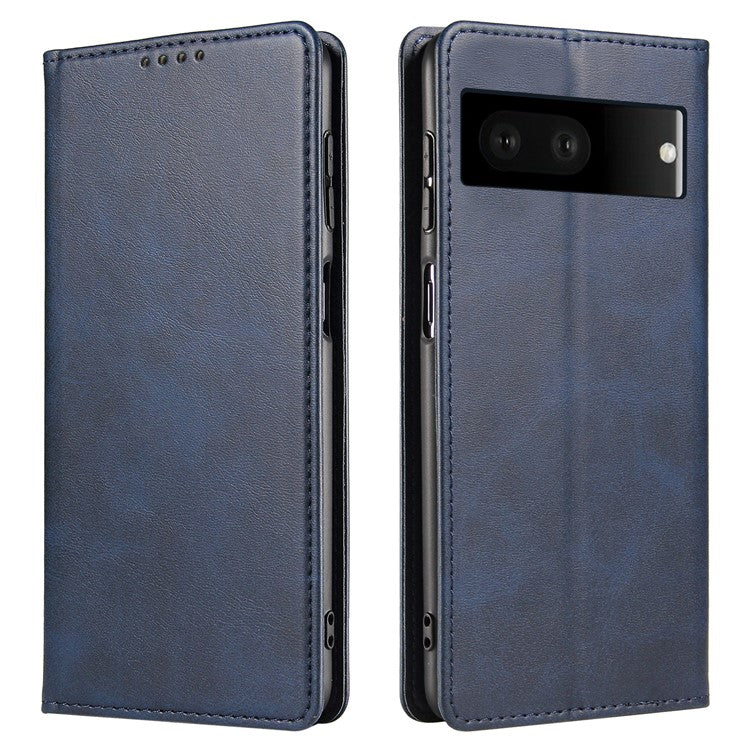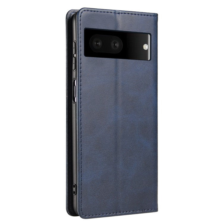 For Google Pixel 7 5G Drop-proof Leather Phone Case Wallet Stand Calf Texture Magnetic Mobile Phone Cover - Blue