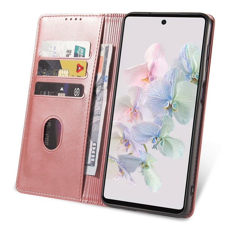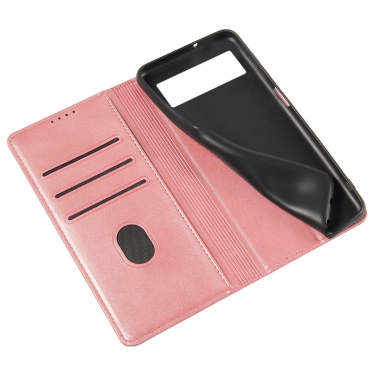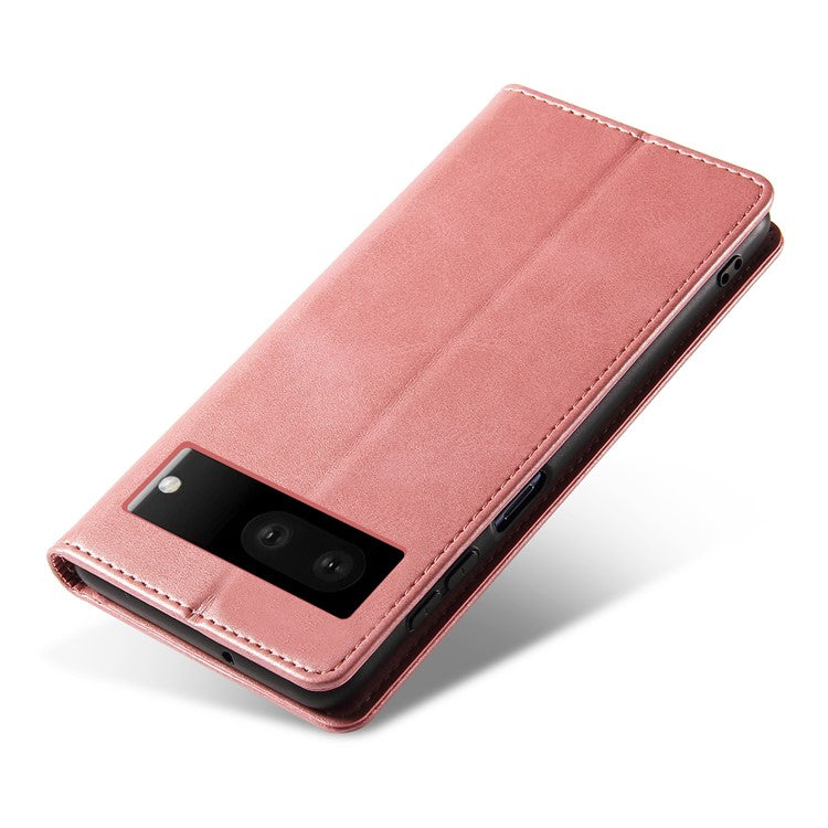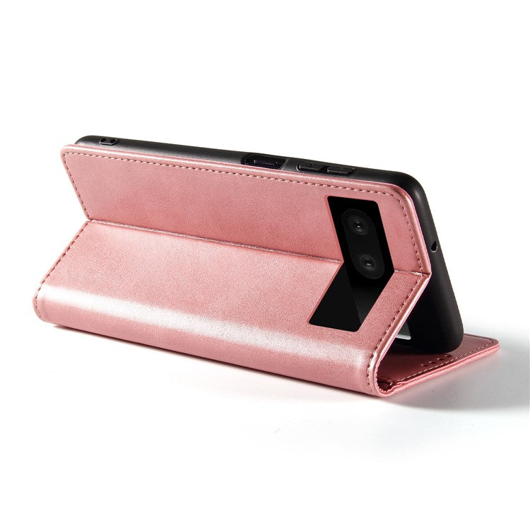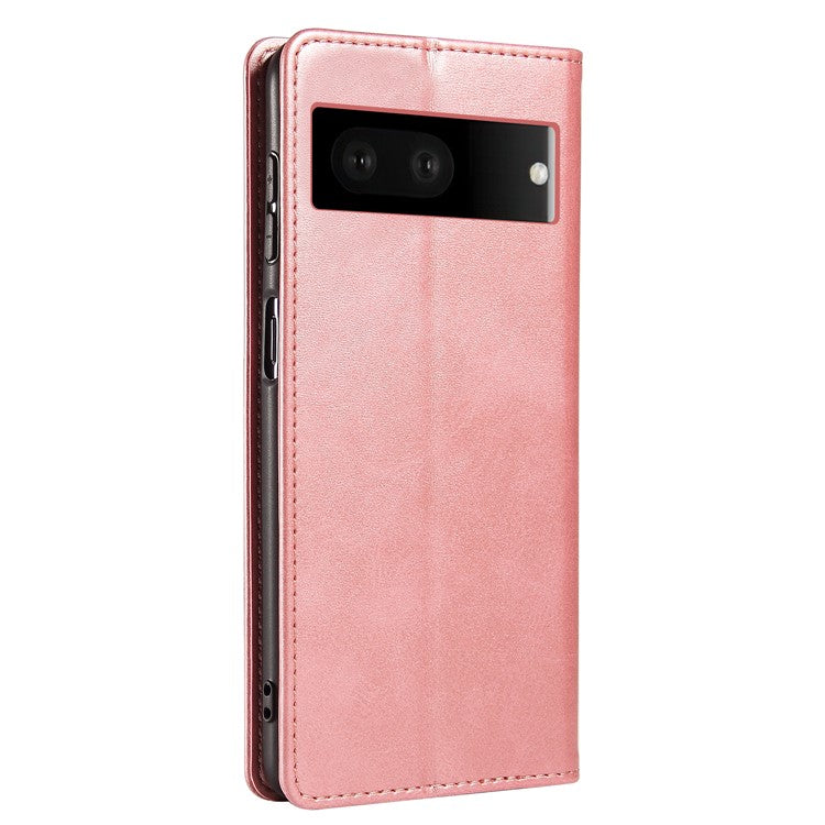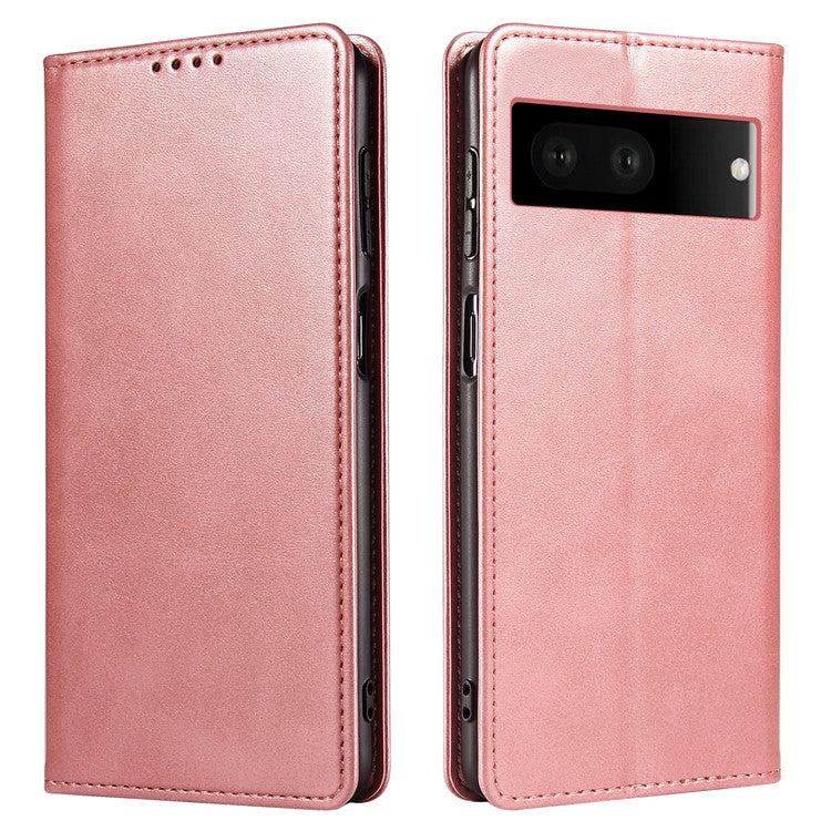 For Google Pixel 7 5G Drop-proof Leather Phone Case Wallet Stand Calf Texture Magnetic Mobile Phone Cover - Rose Gold