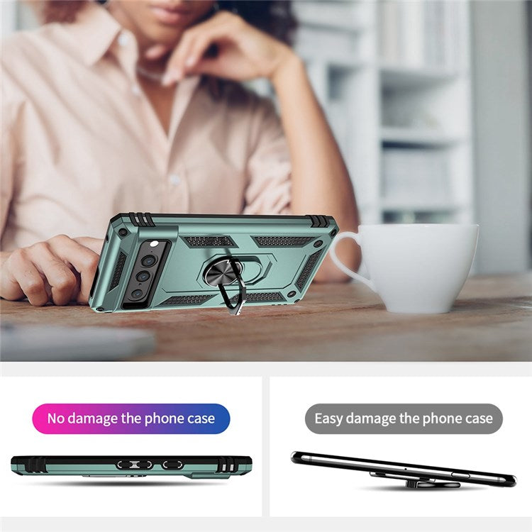 For Google Pixel 7 Pro 5G Phone Case, Bump Proof Hard PC Soft TPU Protective Cover Kickstand - Blackish Green