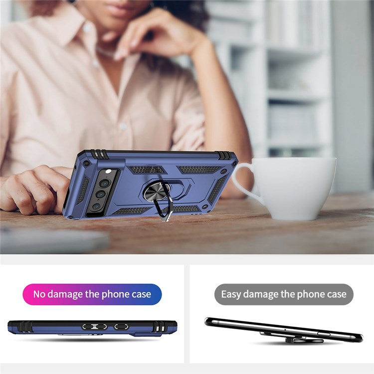 For Google Pixel 7 Pro 5G Phone Case, Bump Proof Hard PC Soft TPU Protective Cover Kickstand - Blue