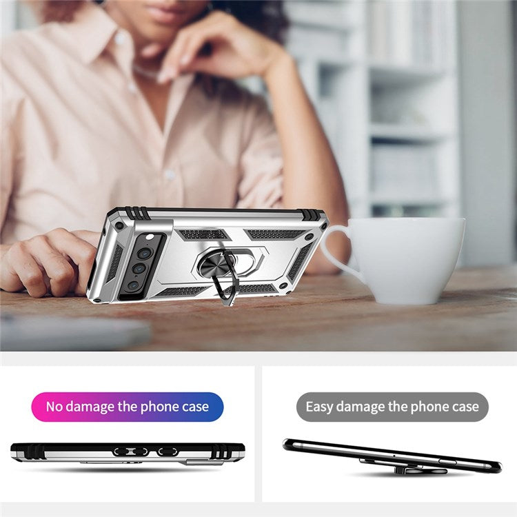 For Google Pixel 7 Pro 5G Phone Case, Bump Proof Hard PC Soft TPU Protective Cover Kickstand - Silver