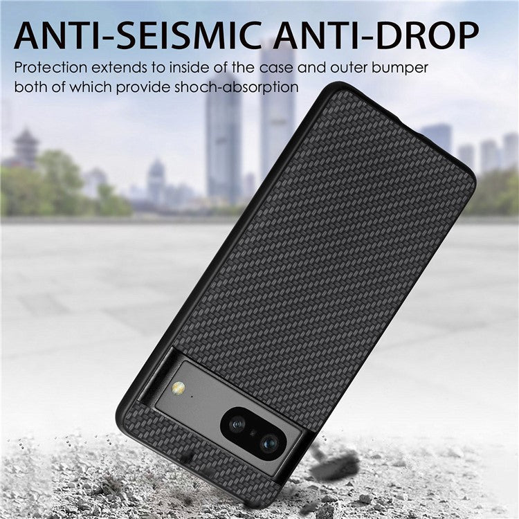For Google Pixel 7a 5G Carbon Fiber Texture Phone Back Case PU Leather Coated PC+TPU Shockproof Cover - Black