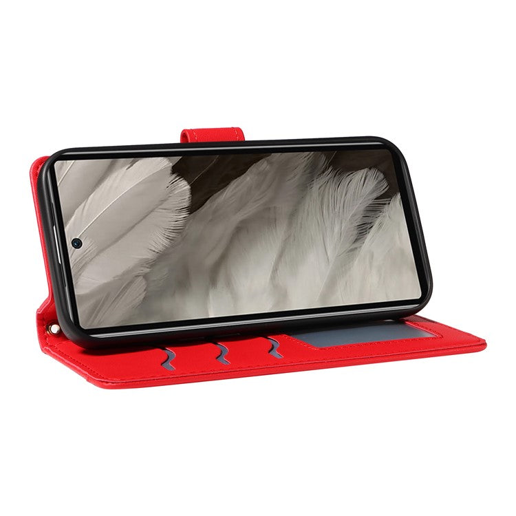 For Google Pixel 7a Case Wallet Rhombus Leather Phone Cover with Shoulder Strap, Wrist Strap - Red