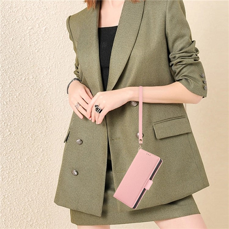 For Google Pixel 7a Leather Case with Card Holder, Straps, Shockproof Wallet Phone Cover - Pink