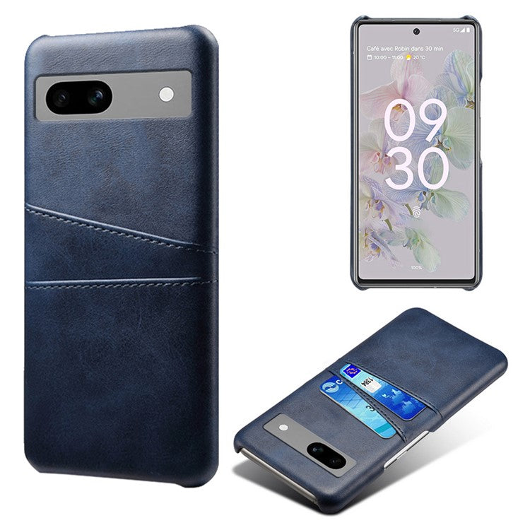 For Google Pixel 7a Mobile Phone Cover Card Holder Plastic + PU Leather Anti-fall Phone Case - Blue