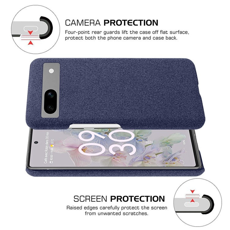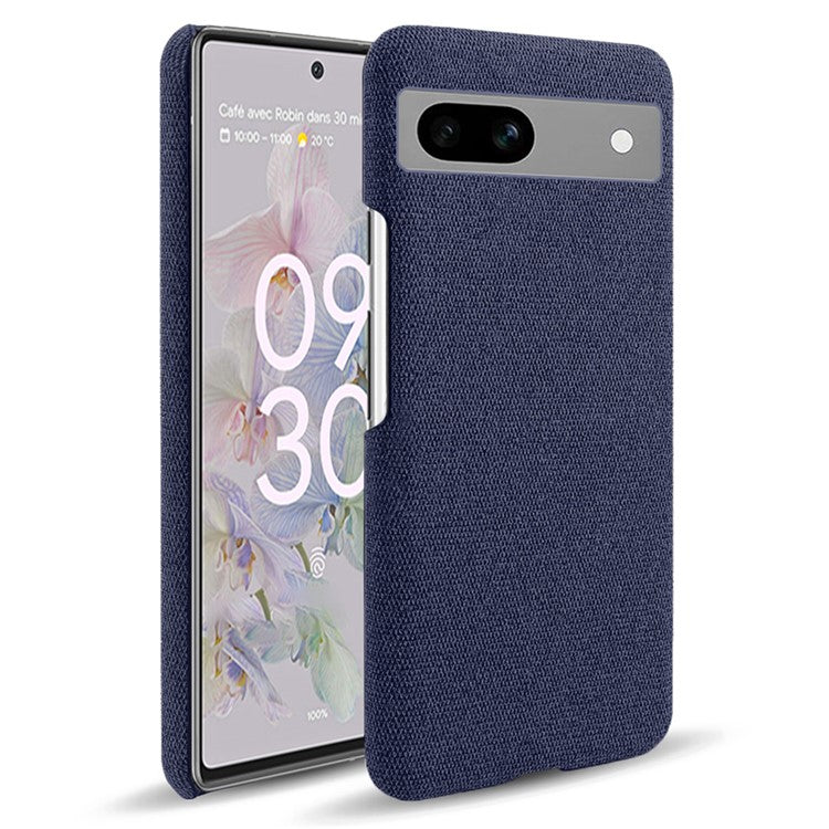 For Google Pixel 7a Non-slip Slim Smartphone Case Solid Color Anti-scratch Hard PC+Cloth Phone Cover - Blue