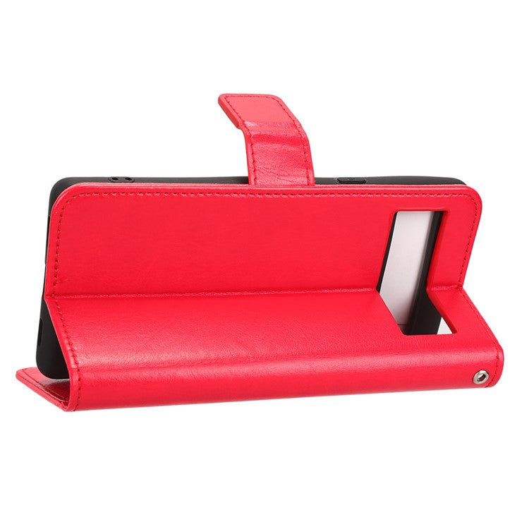 For Google Pixel 7a PU Leather Flip Phone Cover Crazy Horse Texture Wallet Phone Stand Case with Strap - Red