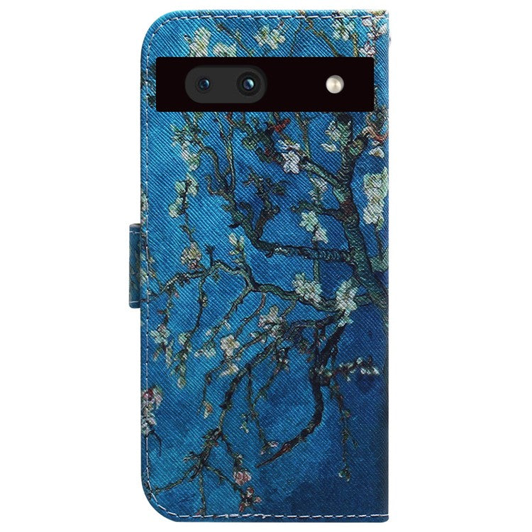 For Google Pixel 7a PU Leather Folio Wallet Case Pattern Printing Stand Magnetic Closure Phone Cover - Apricot Flowers
