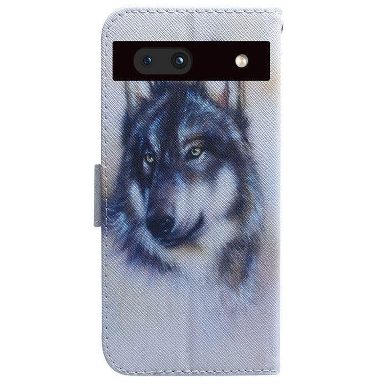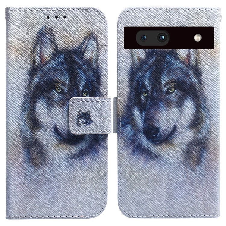 For Google Pixel 7a PU Leather Folio Wallet Case Pattern Printing Stand Magnetic Closure Phone Cover - Wolf