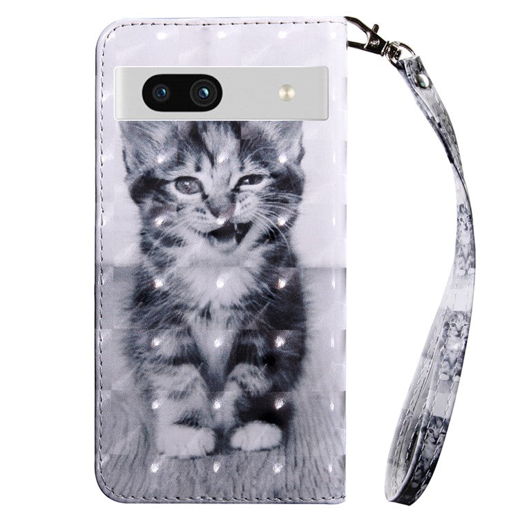For Google Pixel 7a PU Leather Stand Wallet Shockproof Cover 3D Pattern Printing Phone Case - Cat