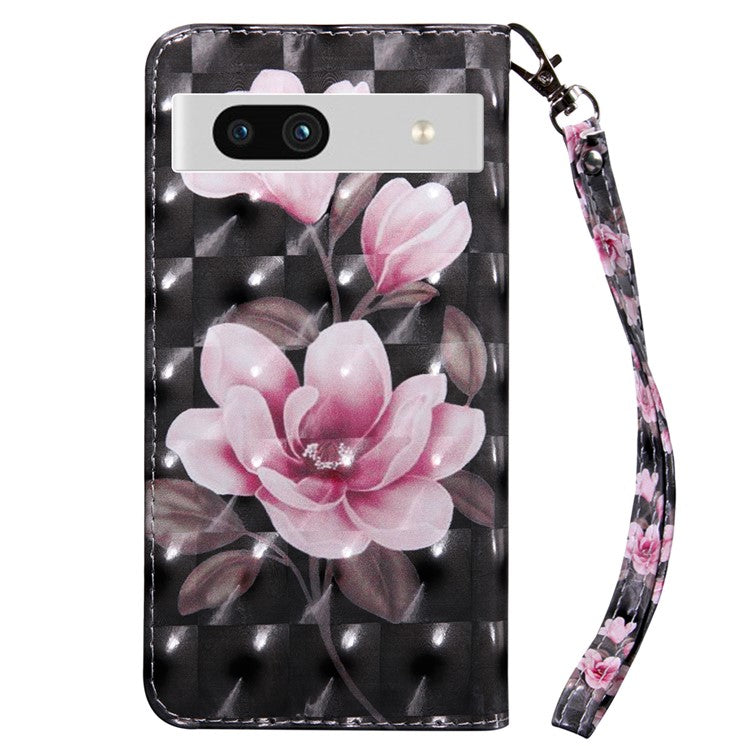 For Google Pixel 7a PU Leather Stand Wallet Shockproof Cover 3D Pattern Printing Phone Case - Pink Flower