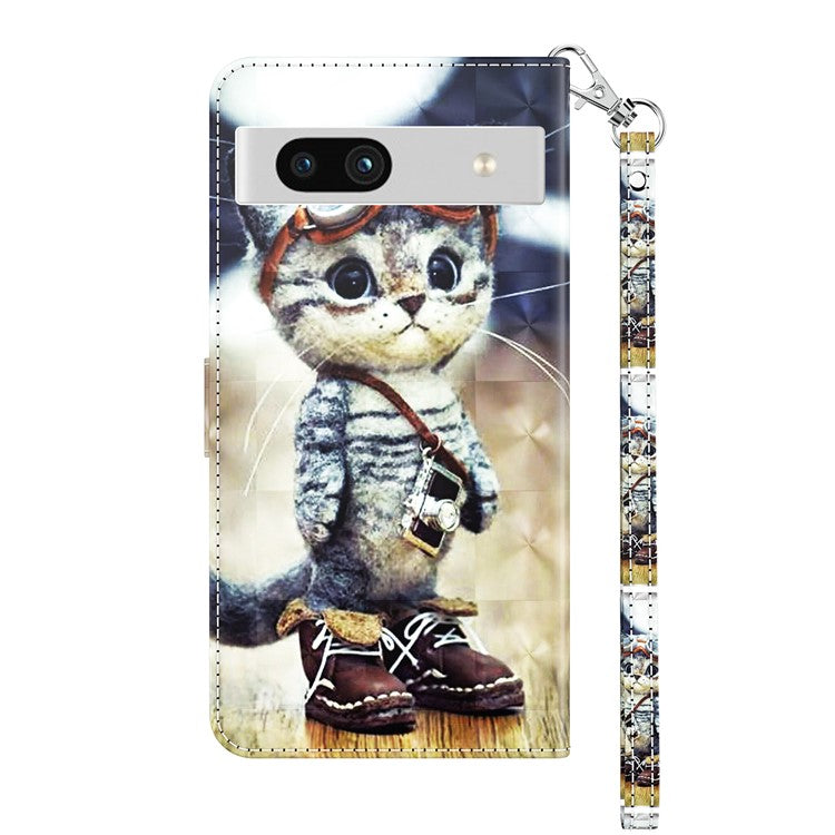 For Google Pixel 7a PU Leather Stand Wallet Shockproof Cover 3D Pattern Printing Phone Case - Standing Cat