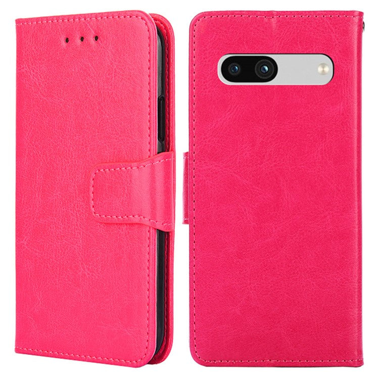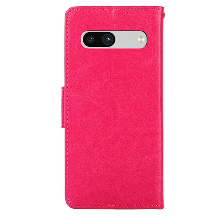 For Google Pixel 7a Textured PU Leather Phone Cover Anti-fall Folio Flip Wallet Case Foldable Stand Phone Shell - Rose