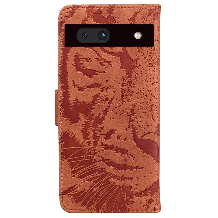 For Google Pixel 7a Tiger Pattern Imprinted Wallet PU Leather Stand Magnetic Clasp Protective Phone Case - Brown