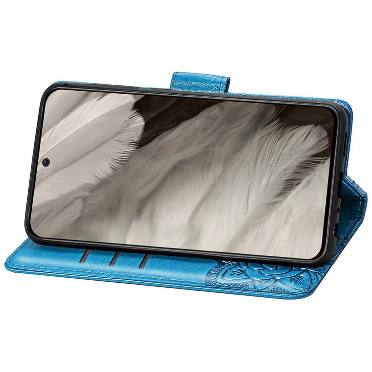 For Google Pixel 8 Case Butterfly Flower Leather Phone Cover 3D Rhinestone Decor - Blue
