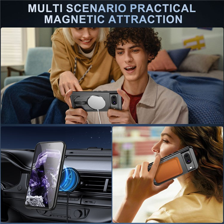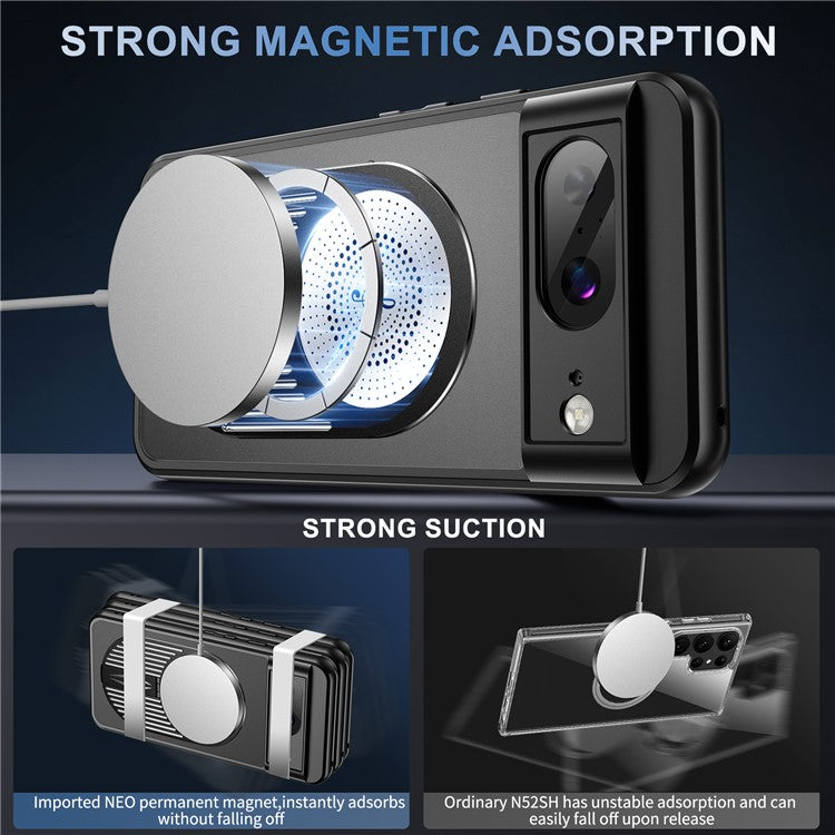 For Google Pixel 8 Case Compatible with MagSafe Heat Dissipation Aromatherapy Kickstand Silicone+PC Phone Cover - Black