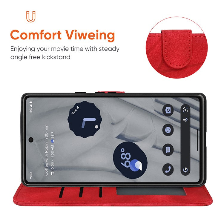 For Google Pixel 8 Case Imprinted Lines Skin-Friendly Flip Leather Phone Cover - Red