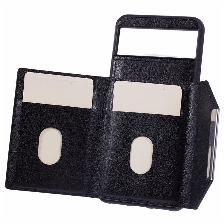 For Google Pixel 8 Case Leather Phone Back Cover with Card Slot Kickstand - Black
