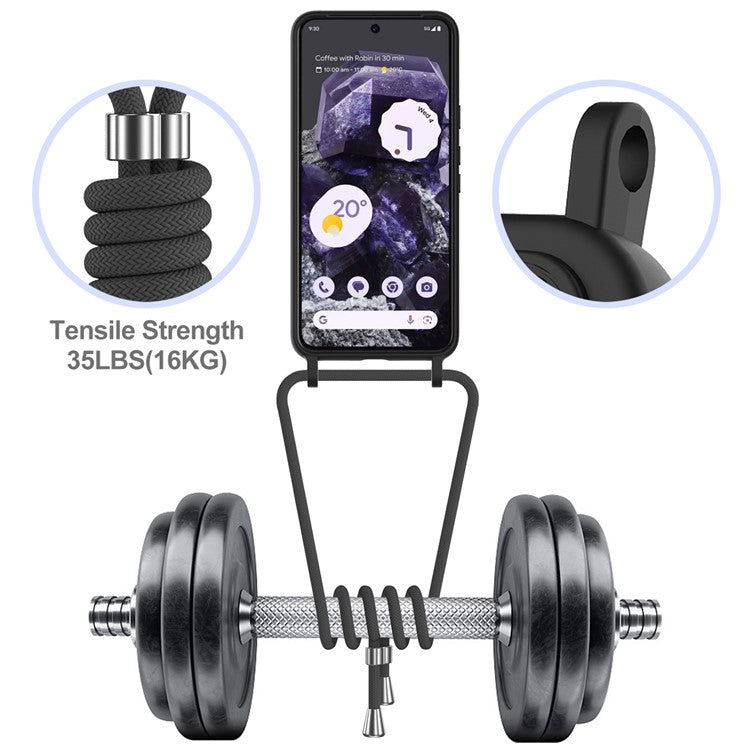 For Google Pixel 8 Case Liquid Silicone Card Holder Phone Back Cover with Lanyard - Black