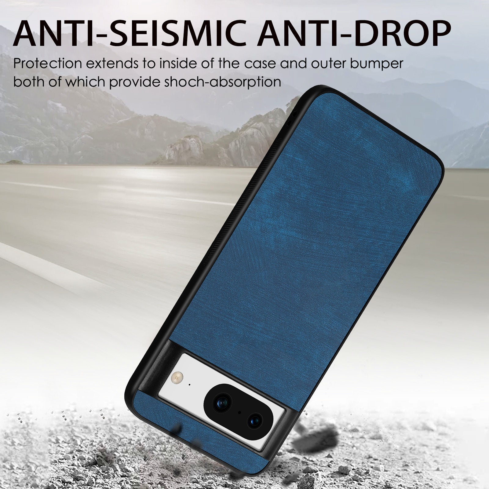 For Google Pixel 8 Case Shockproof Slim Retro Leather Phone Back Cover - Blue