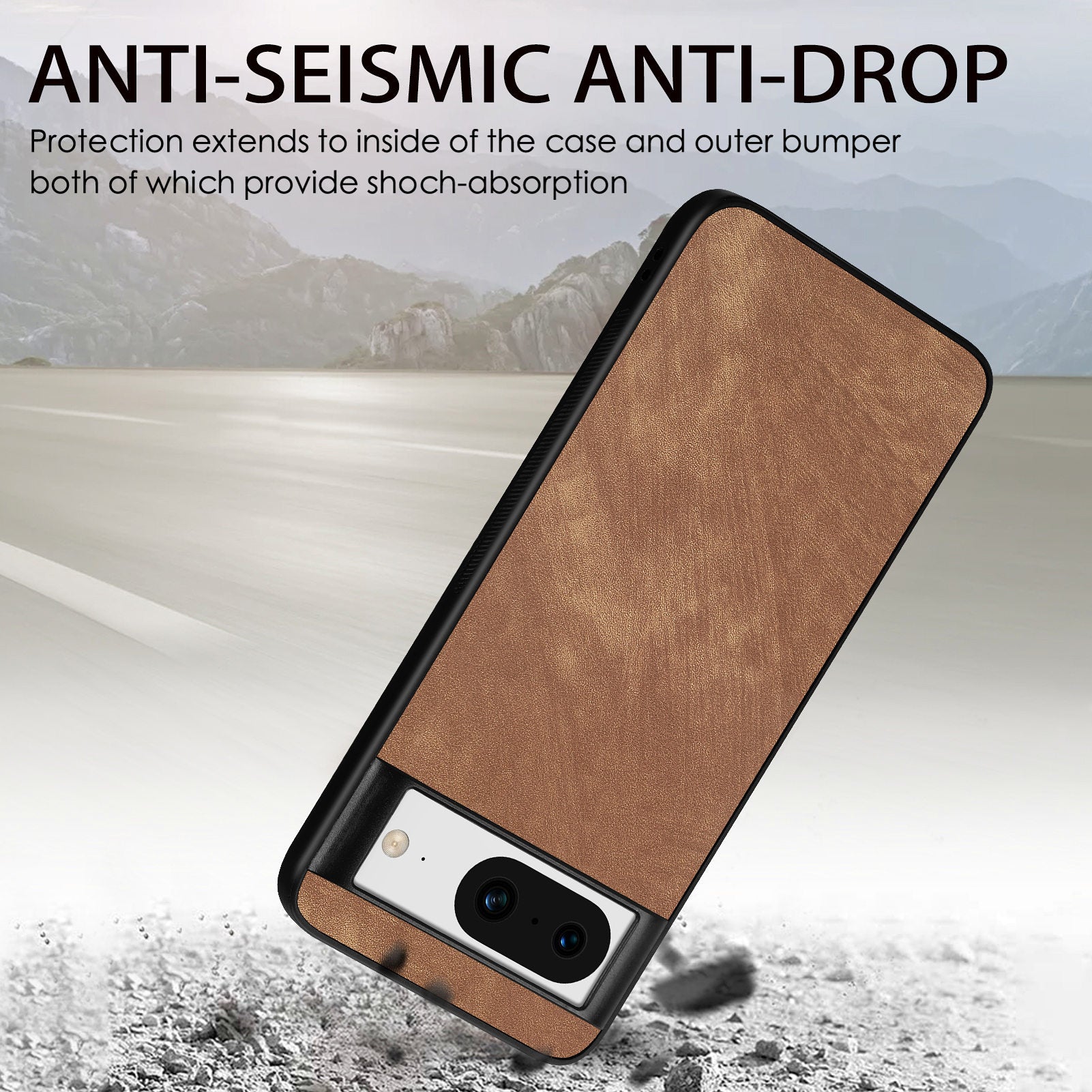 For Google Pixel 8 Case Shockproof Slim Retro Leather Phone Back Cover - Brown