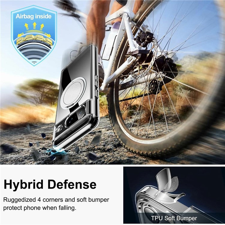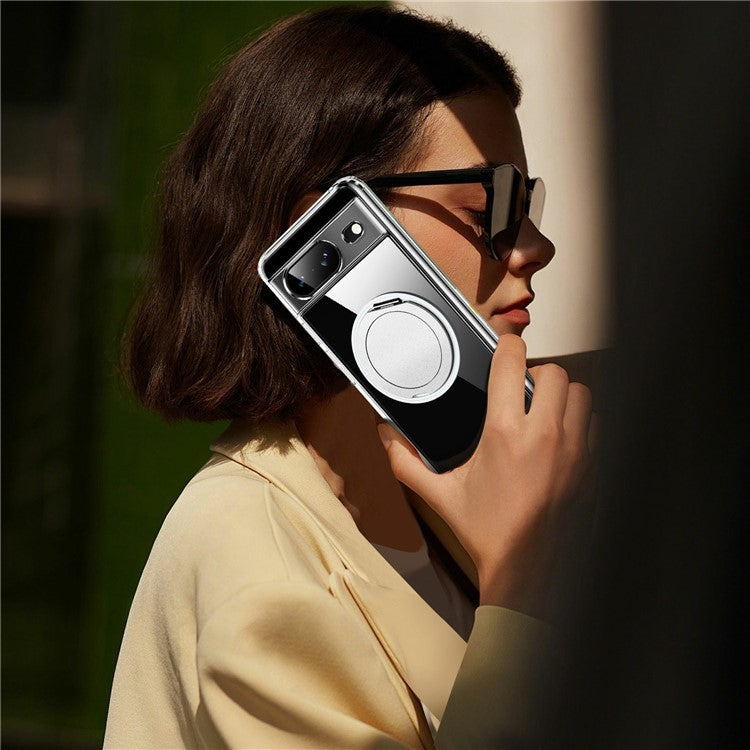 For Google Pixel 8 Magnetic Case Rotary Kickstand TPU PC Clear Phone Back Cover