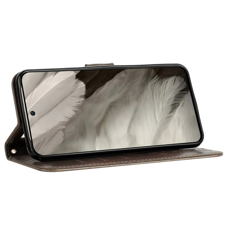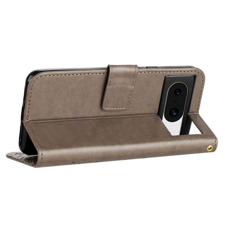For Google Pixel 8 Phone Case Leather Flip Cover Butterfly Flower Pattern Imprinted - Grey