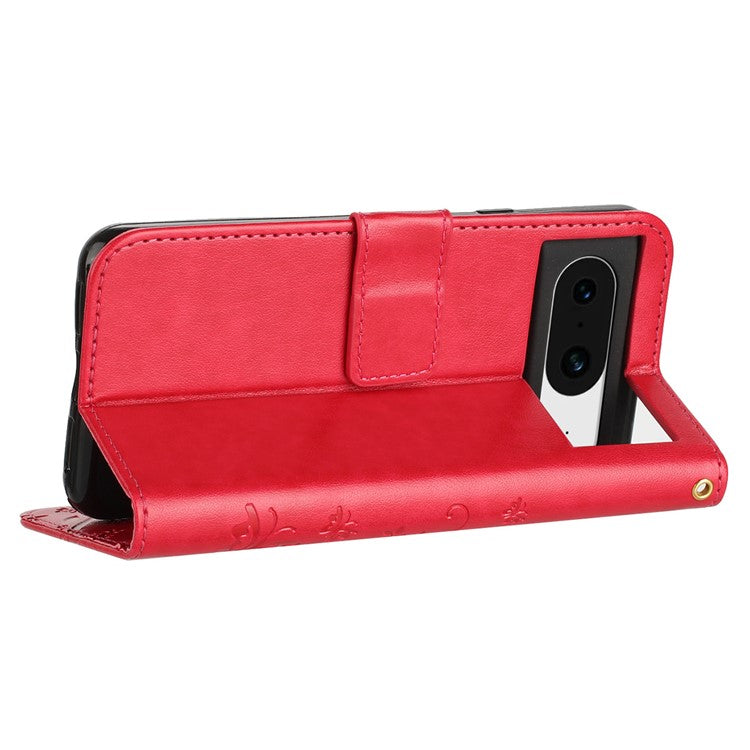 For Google Pixel 8 Phone Case Leather Flip Cover Butterfly Flower Pattern Imprinted - Red