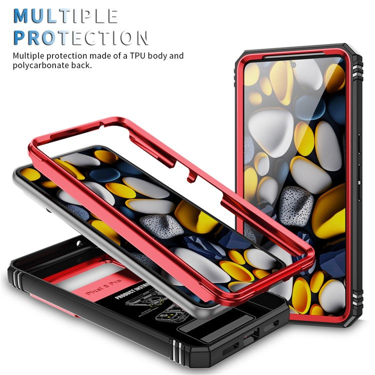 For Google Pixel 8 Pro Case Camshield Ring Holder Kickstand TPU+PC Phone Cover - Black+Red