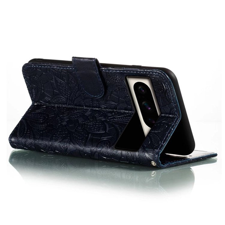 For Google Pixel 8 Pro Case Lace Flowers PU Leather Flip Wallet Phone Cover - Black