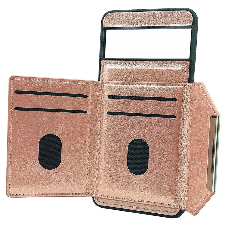 For Google Pixel 8 Pro Case Leather Phone Back Cover with Card Holder Kickstand - Rose Gold