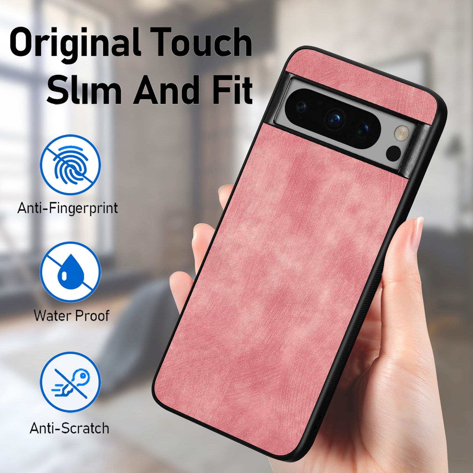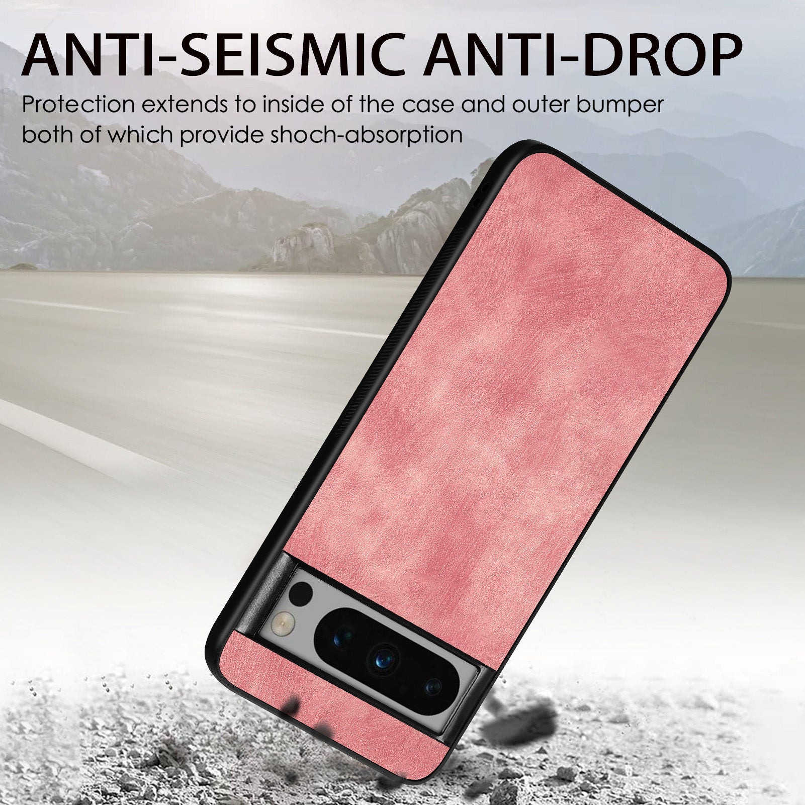 For Google Pixel 8 Pro Case Shockproof Slim Retro Leather Phone Back Cover - Pink