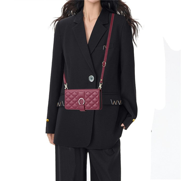 For Google Pixel 8 Pro Crossbody Leather Case Ring Buckle Wallet Stand Rhombus Mobile Cover - Red