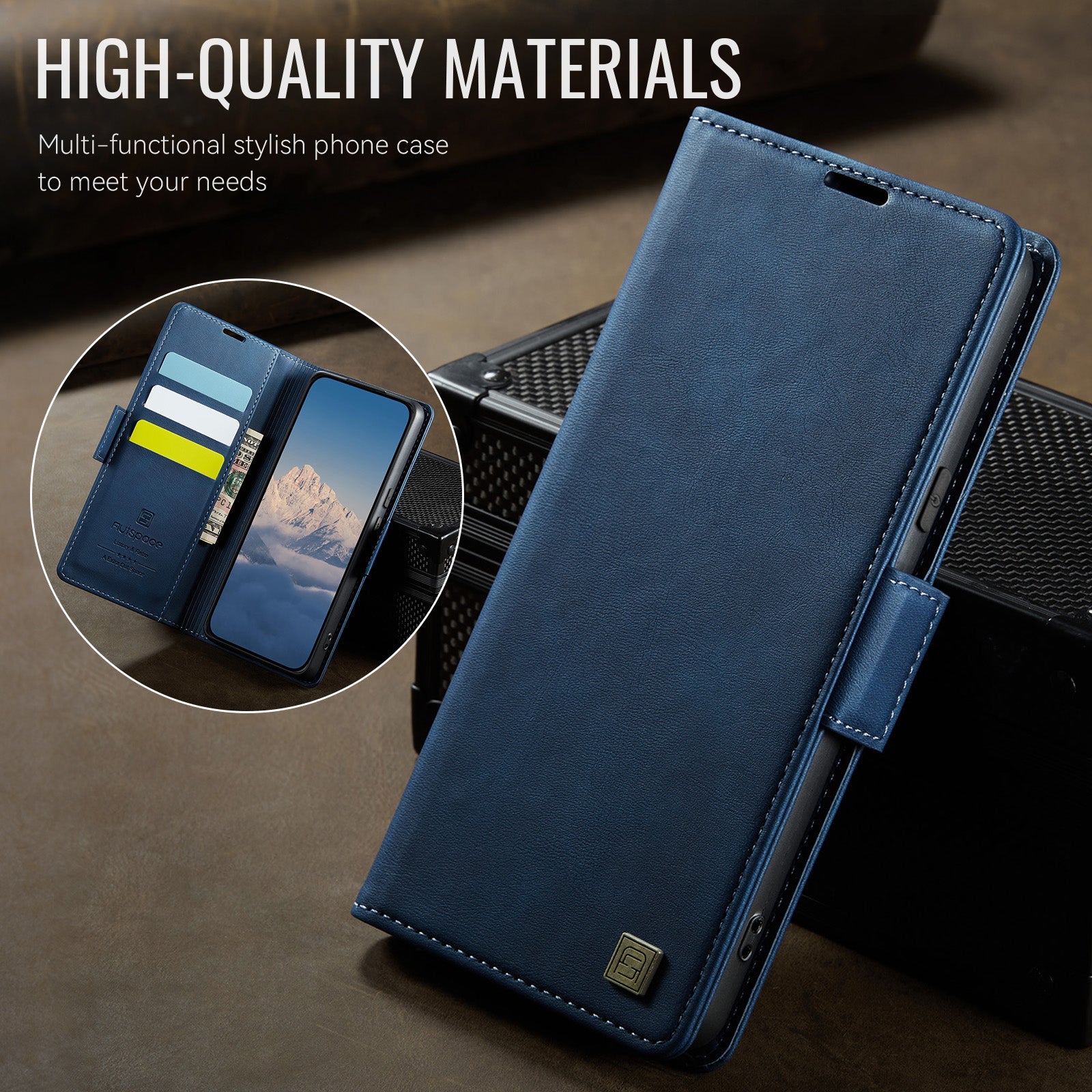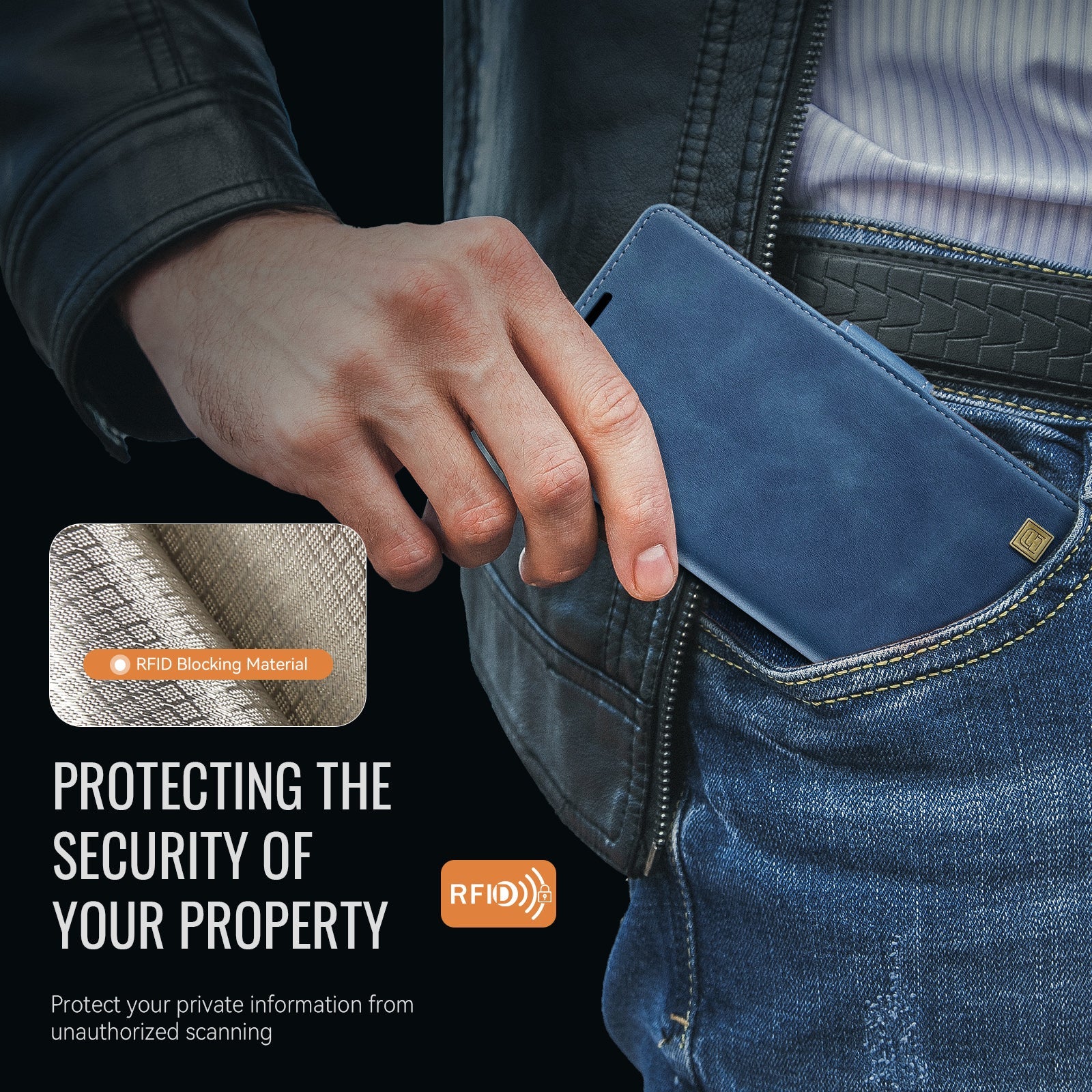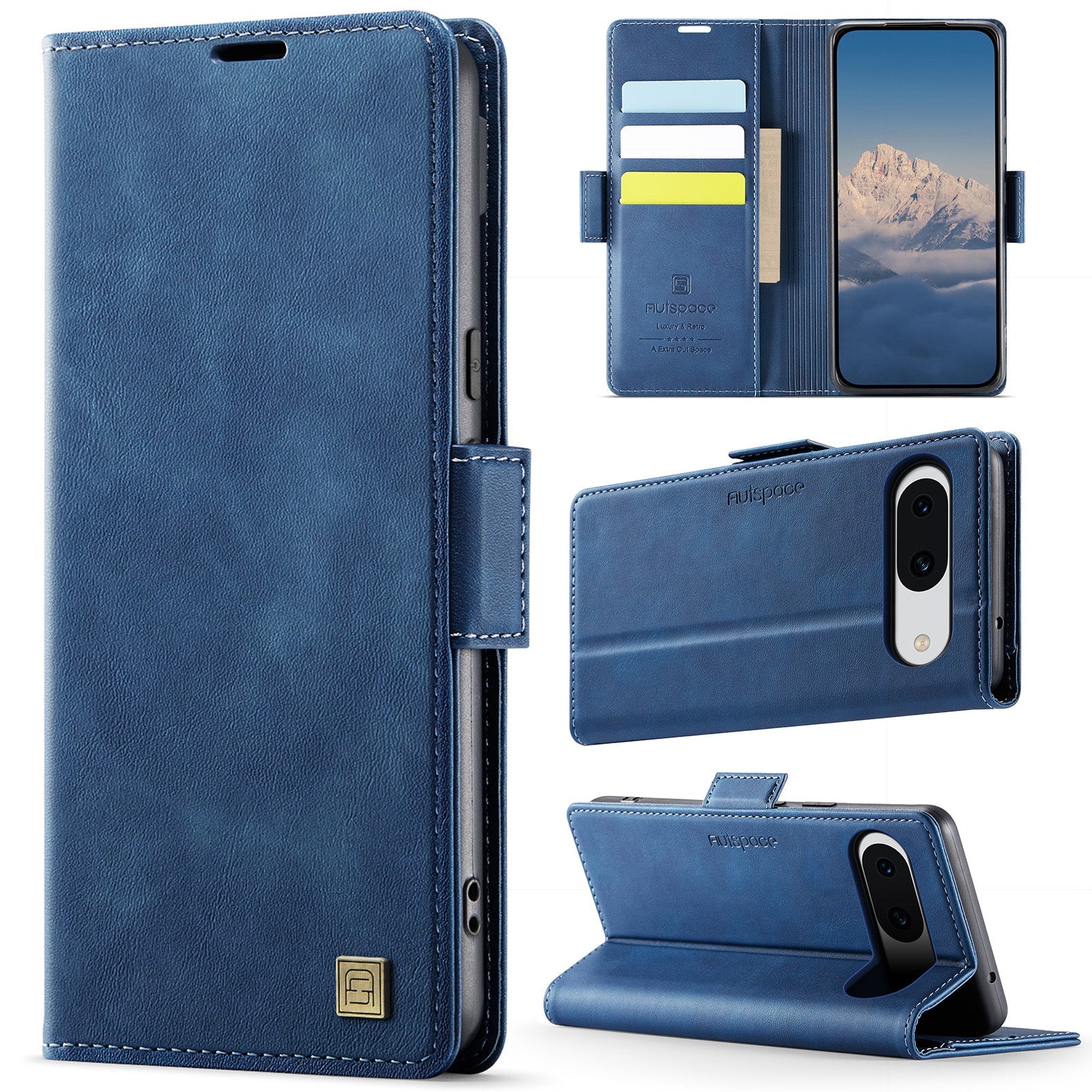 For Google Pixel 8a Case AUTSPACE A11 RFID Blocking Retro Leather Cell Phone Wallet Cover - Blue