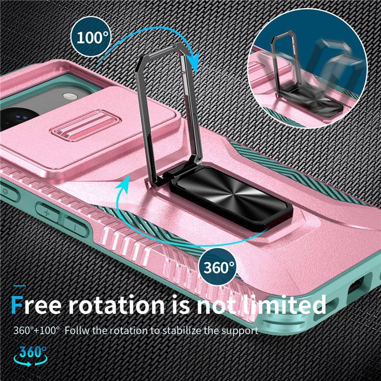 For Google Pixel 8a Case Camshield Kickstand TPU+PC Anti-Slip Phone Cover - Pink+Grey Green