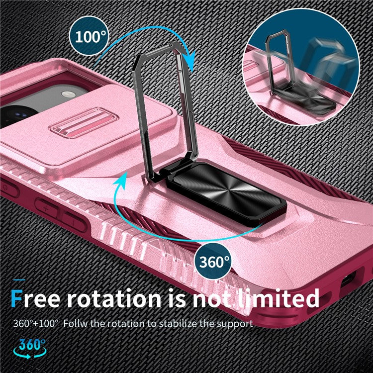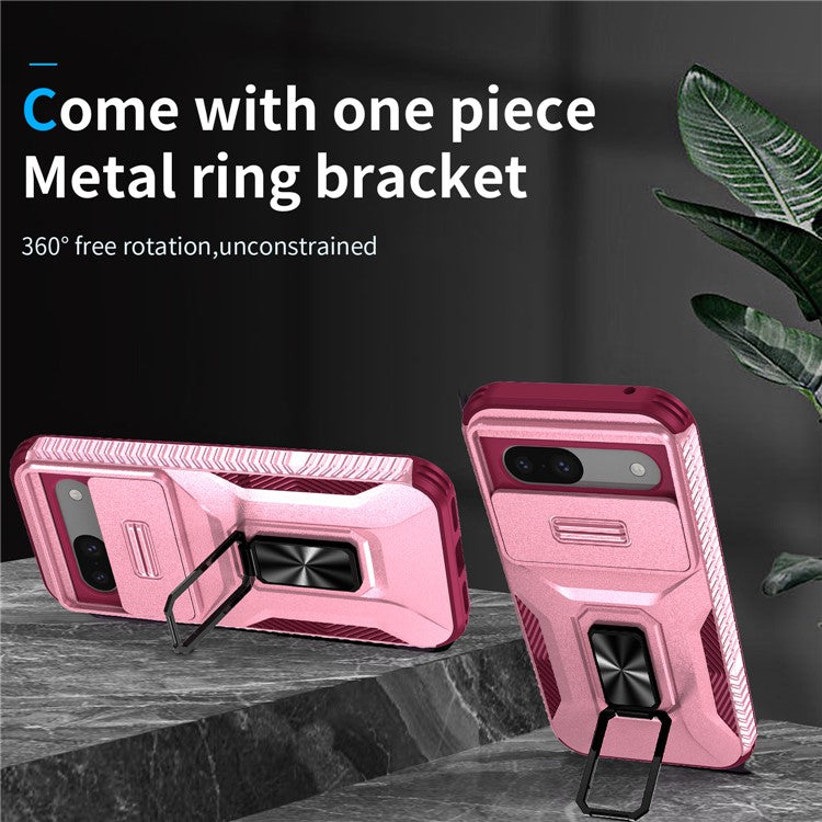 For Google Pixel 8a Case Camshield Kickstand TPU+PC Anti-Slip Phone Cover - Pink+Wine Red