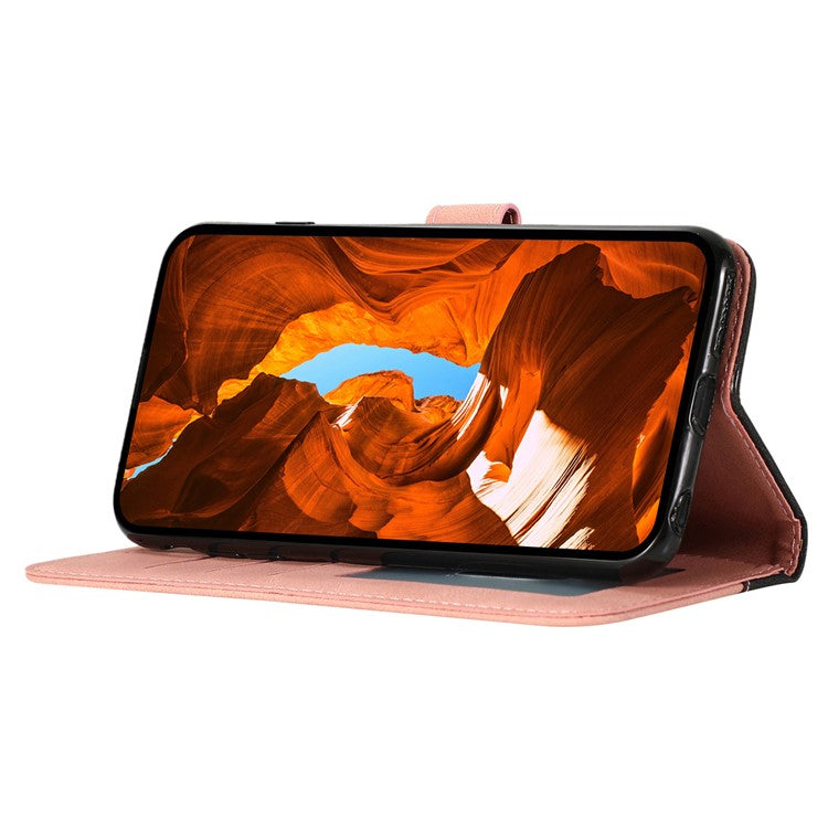 For Google Pixel 8a Case Color Splicing PU Leather Wallet Stand Phone Cover - Black+Pink
