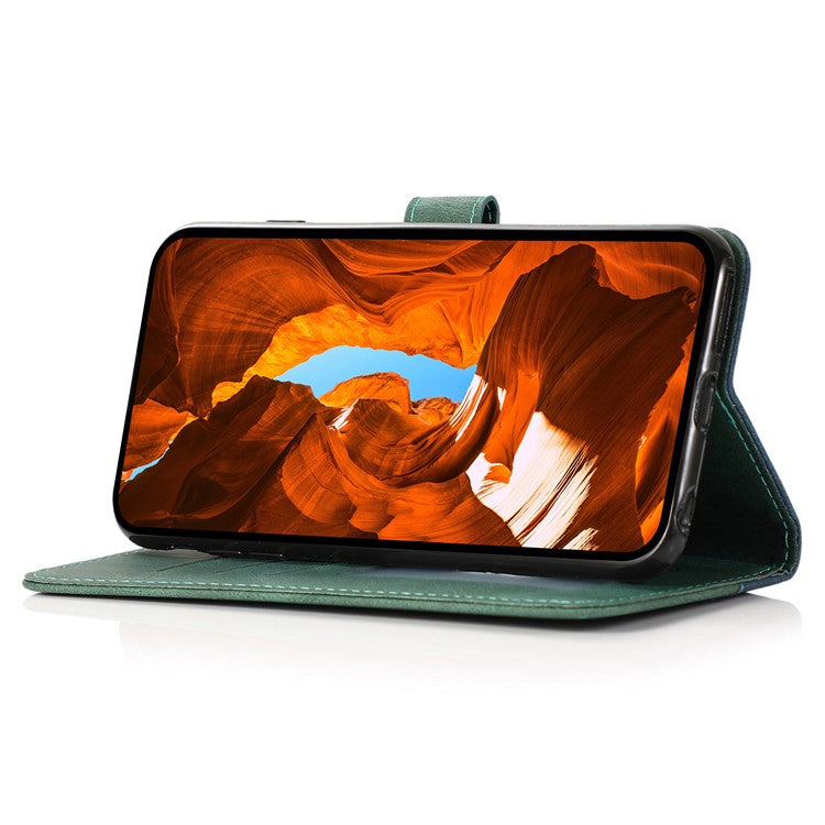 For Google Pixel 8a Case Color Splicing PU Leather Wallet Stand Phone Cover - Blue+Green