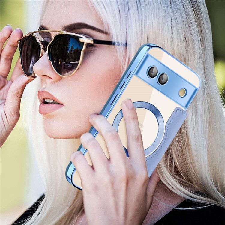 For Google Pixel 8a Case Compatible with MagSafe Rhombus PU Leather Phone Cover - Blue