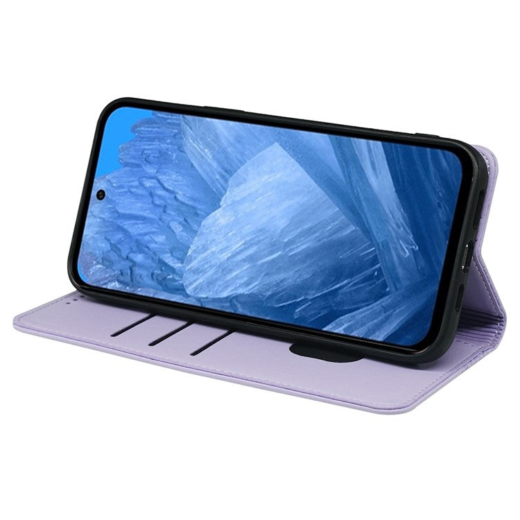 For Google Pixel 8a Case Four-Leaf Clover Leather Flip Phone Cover Stand Wallet - Light Purple