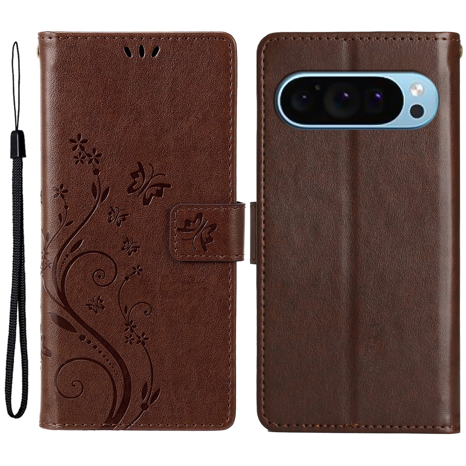 For Google Pixel 9 Case Butterfly Pattern PU Leather Wallet Phone Cover - Brown
