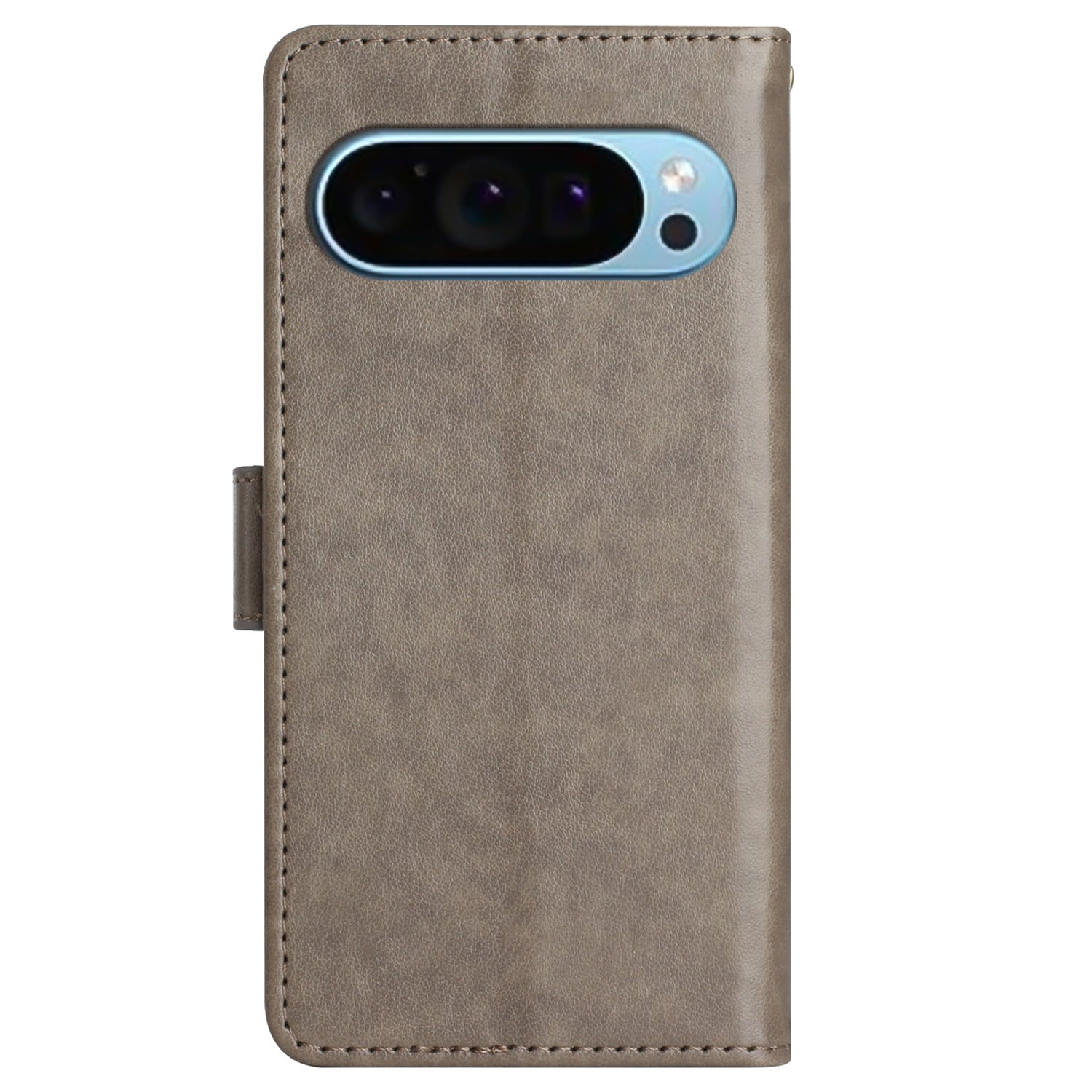 For Google Pixel 9 Case Butterfly Pattern PU Leather Wallet Phone Cover - Grey