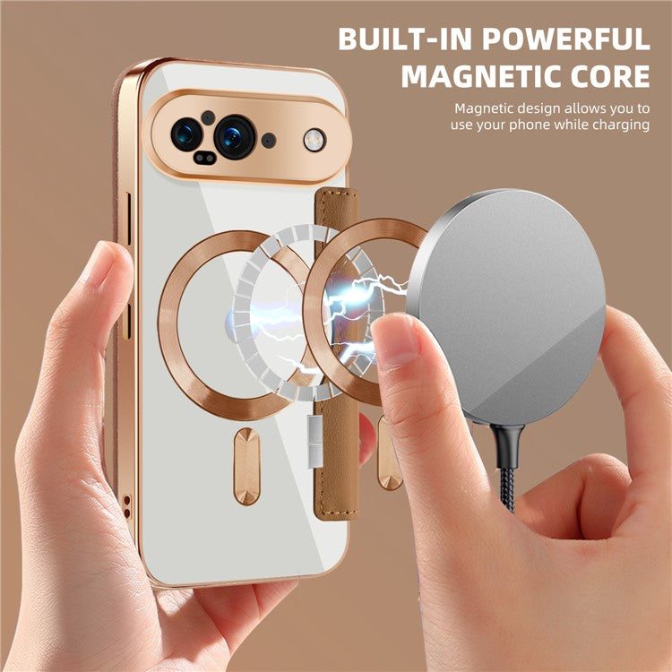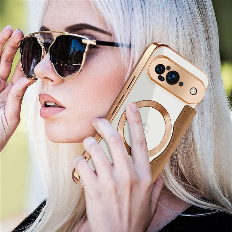 For Google Pixel 9 Case Compatible with MagSafe Rhombus PU Leather Phone Cover - Brown
