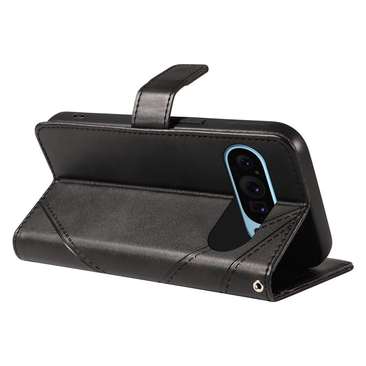For Google Pixel 9 Case Geometric Line PU Leather Phone Cover with Card Holder - Black