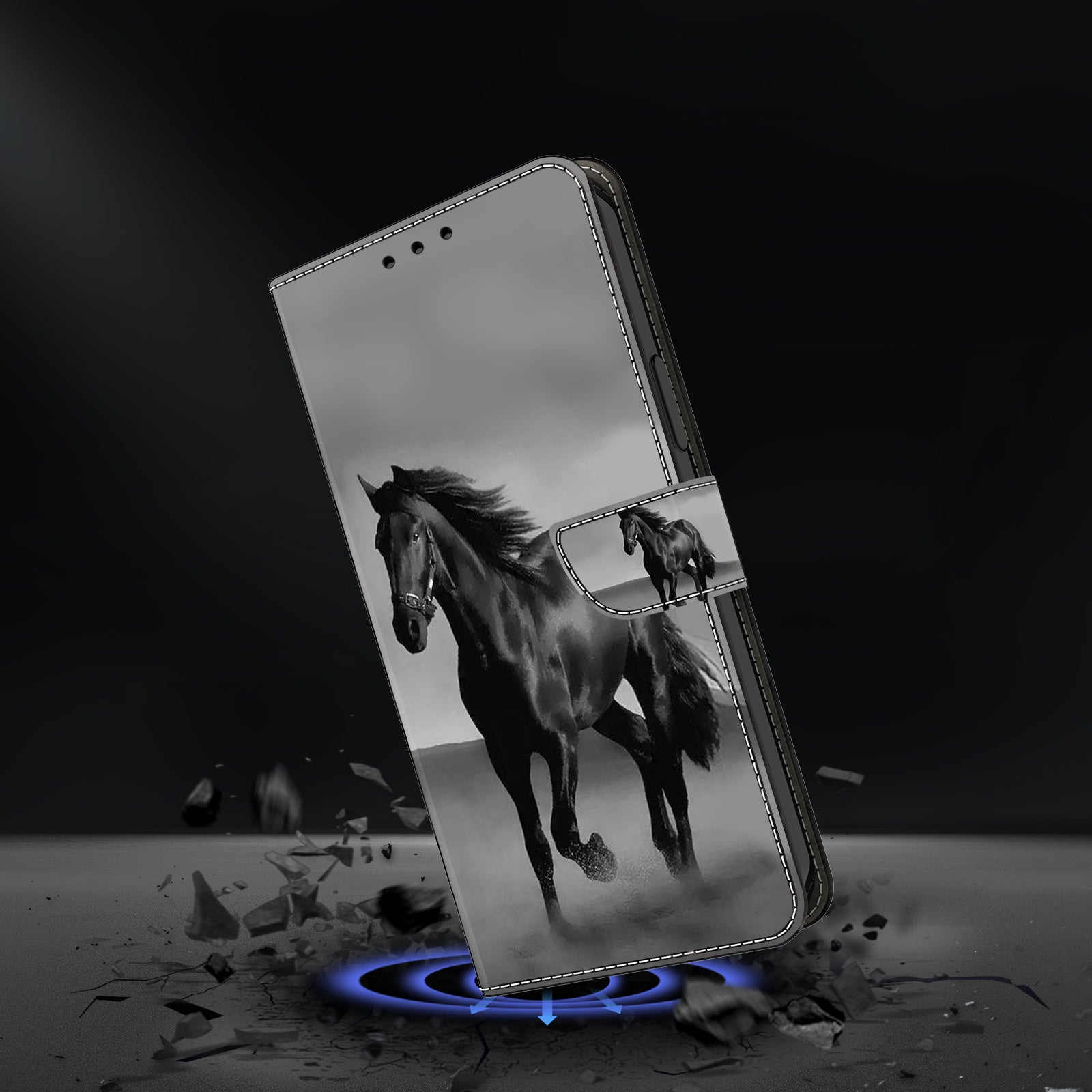 For Google Pixel 9 Case PU Leather 3D Pattern Wallet Phone Cover with Magnetic Clasp - Black Horse