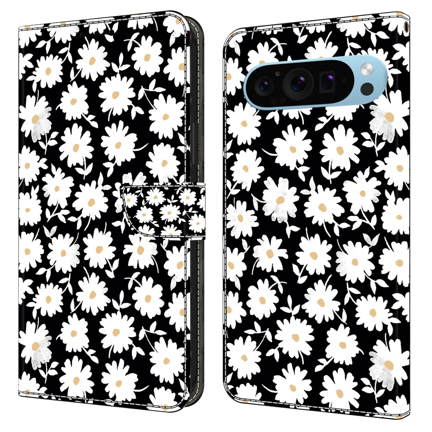 For Google Pixel 9 Case PU Leather 3D Pattern Wallet Phone Cover with Magnetic Clasp - Floral