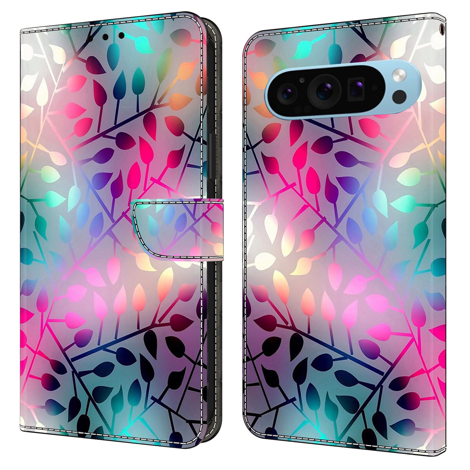 For Google Pixel 9 Case PU Leather 3D Pattern Wallet Phone Cover with Magnetic Clasp - Maple Leaf